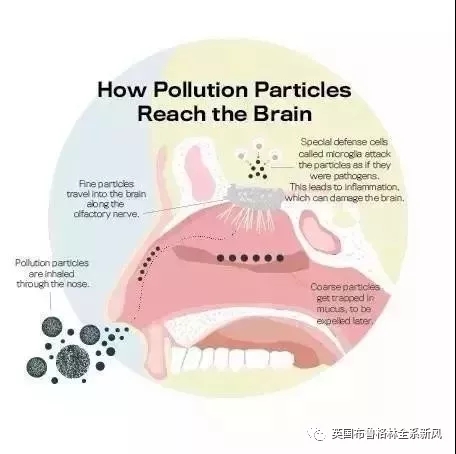 不同于PM2.5~10的粗顆粒污染物(如沙塵暴),PM小于2.5的霧霾可以通過呼吸道直達我們的大腦。